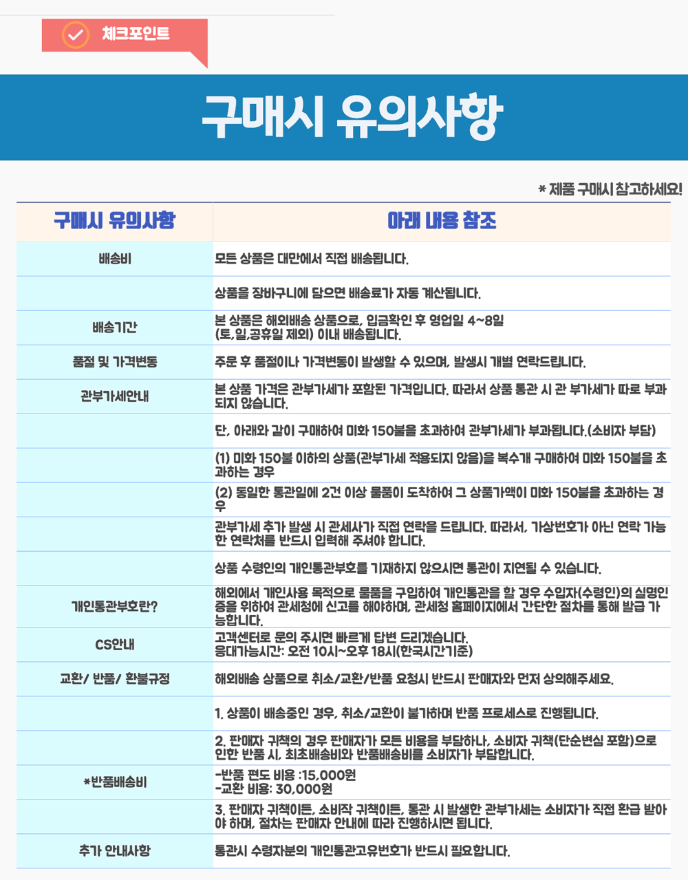 구매 전 확인사항 및 배송 관련 안내사항를 꼭 필독해주세요.